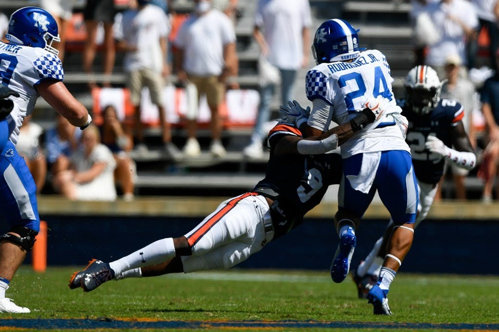 Auburn's defense had a difficult time stopping the Kentucky offense which racked up 384 yards of total offense. Kentucky quarterback Terry Wilson threw for 239 yards and one touchdown.