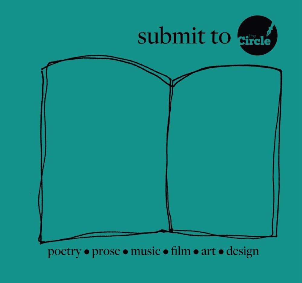 A graphic telling students what kind of content to submit to the Circle: poetry, prose, music, film, art, and design
